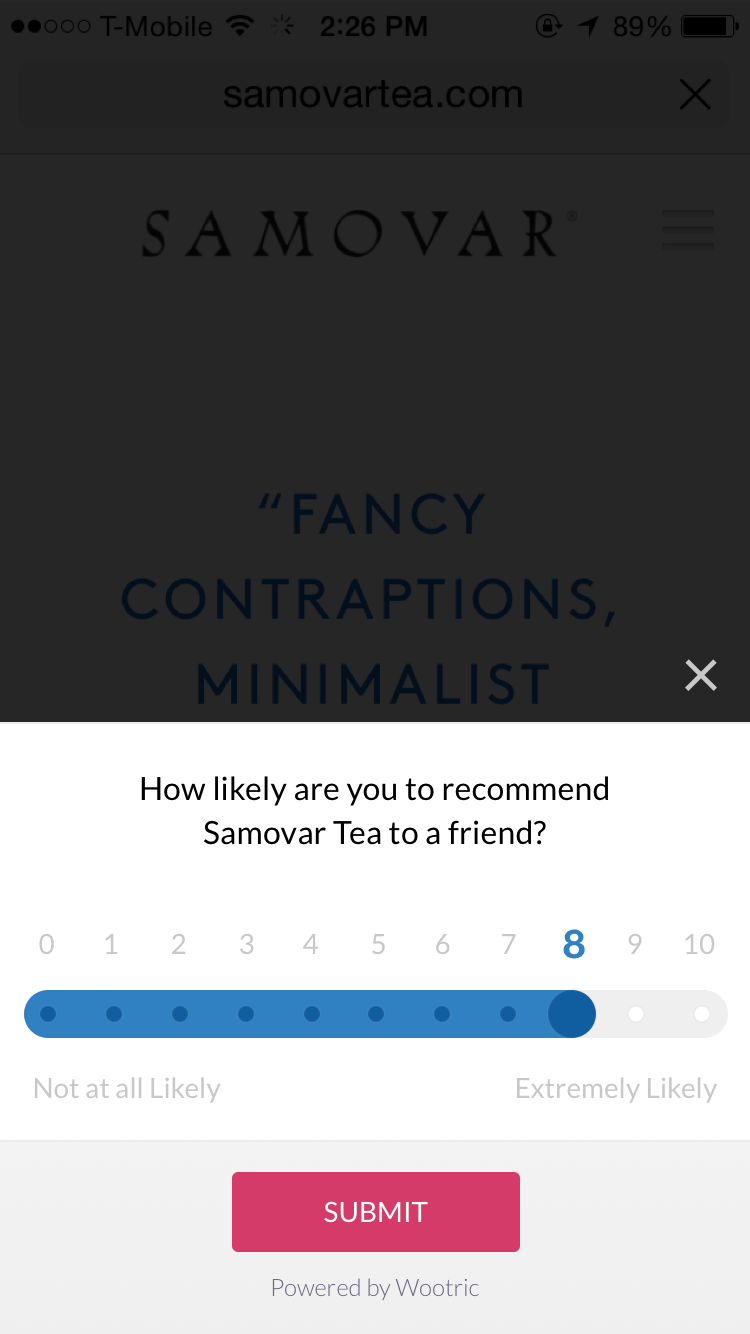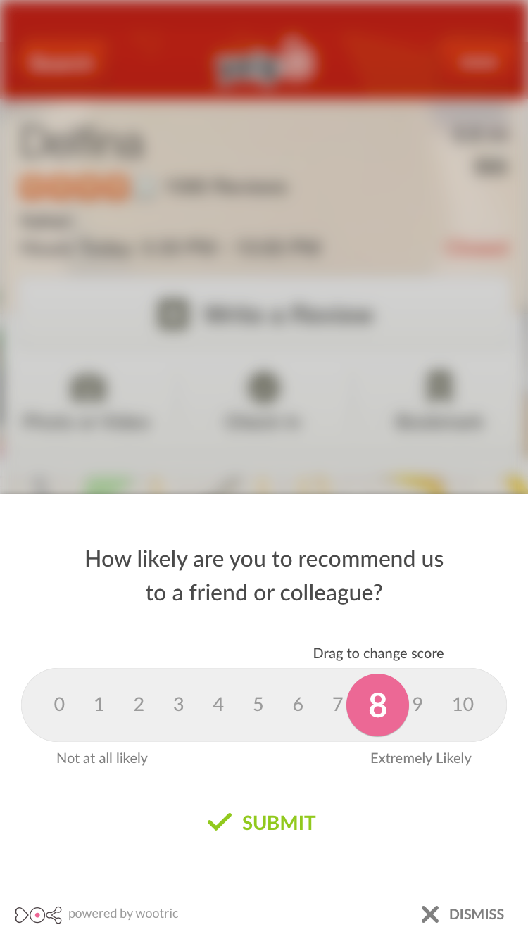 Wootric provides services to measure the Net Promoter Score in iOS and Android applications, websites and through email.